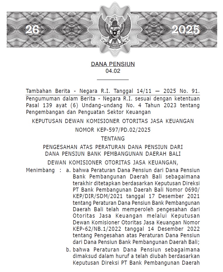 Selamat datang di Website Dana Pensiun BPD Bali.